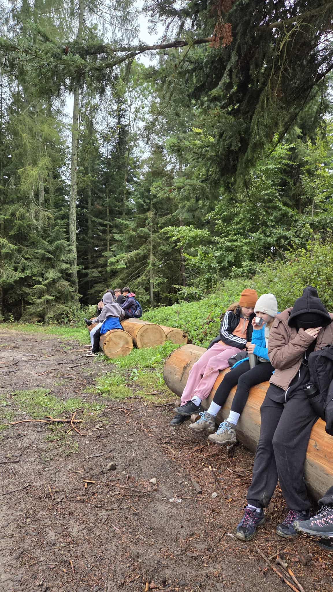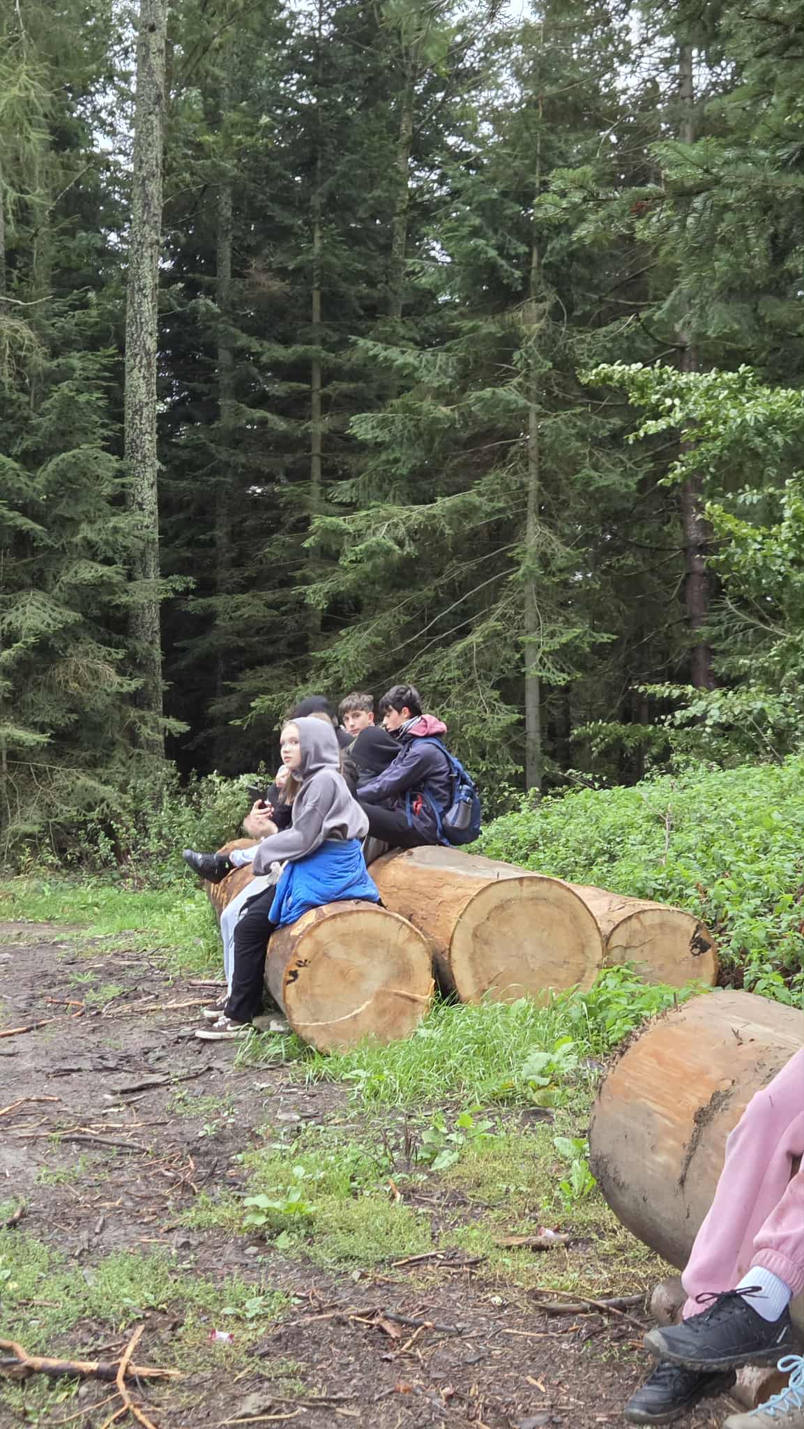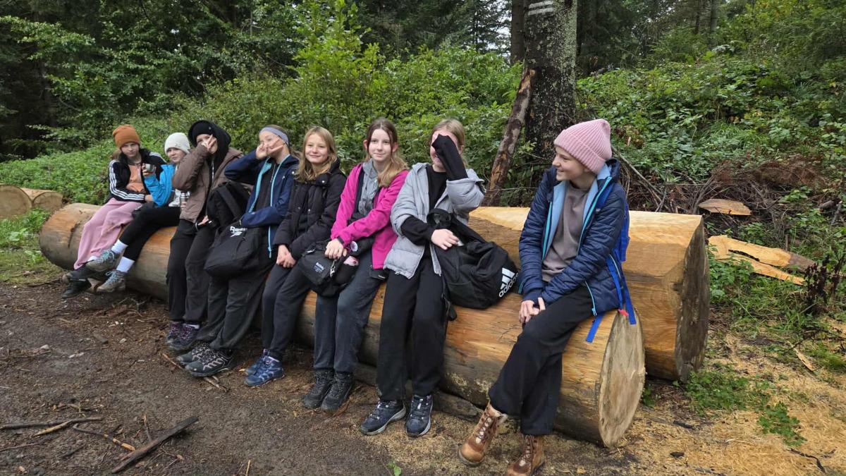 Nasi uczniowie nie przestraszyli się ani chłodu, ani mgły, ani wiatru. Dzielnie maszerowali, a na szczycie czekał na wszystkich poczęstunek przygotowany przez Koło Gospodyń Wiejskich Zielony Las w Grywałdzie.