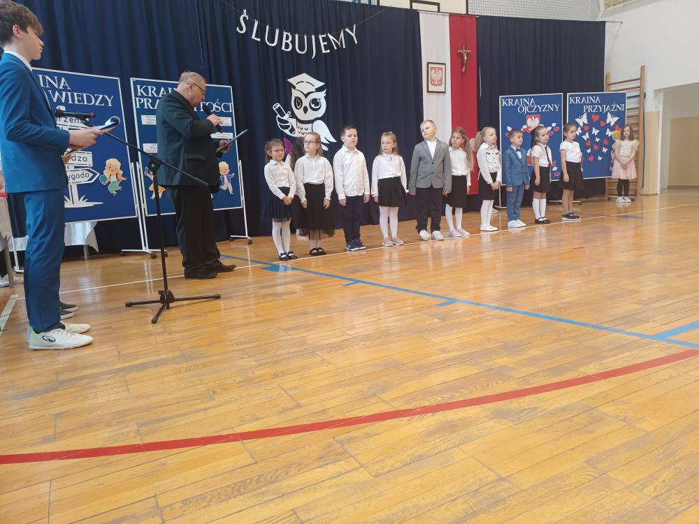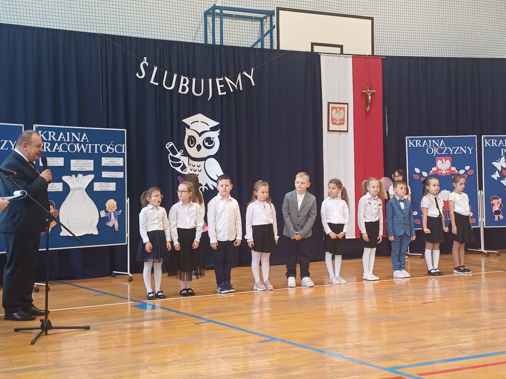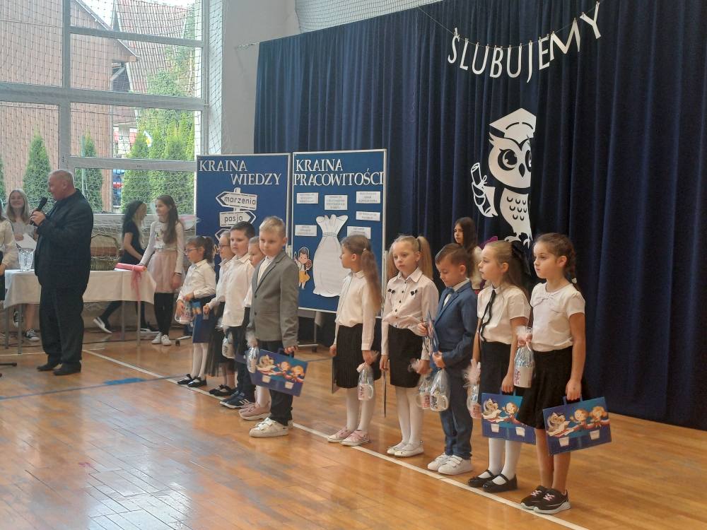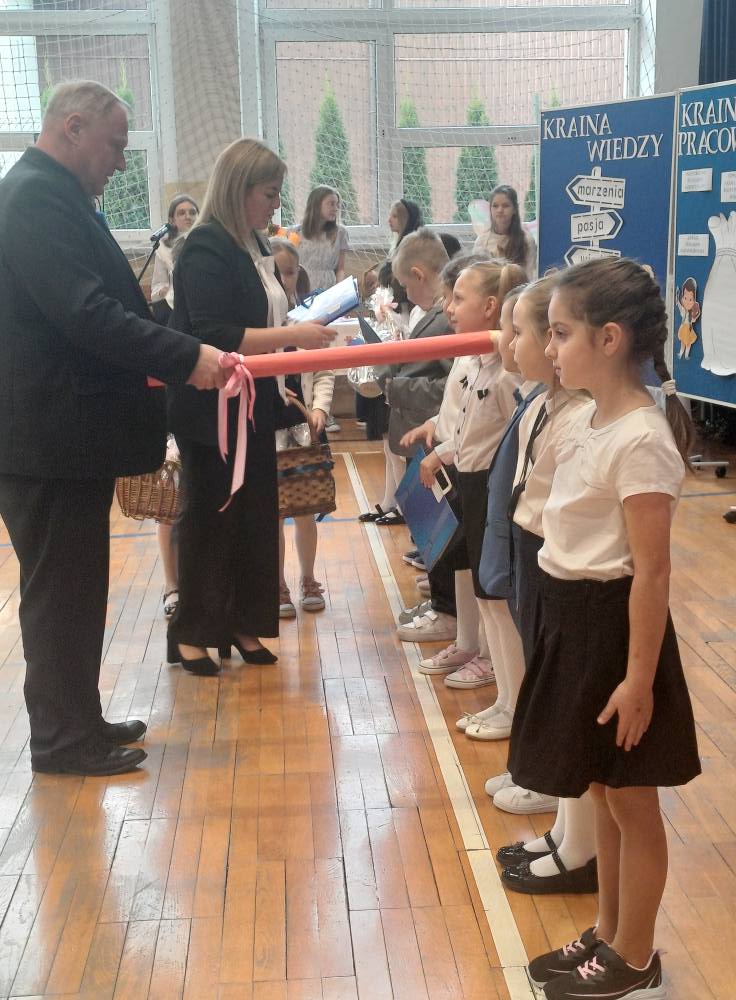 16 X dziesięcioro pierwszoklasistów zostało pasowanych na uczniów Szkoły Podstawowej im. Bohaterów Warszawy w Grywałdzie oraz ślubowało wzorowo wypełniać obowiązki jej ucznia. Uroczystość rozpoczął Dyrektor Szkoły p. Władysław Bąk oraz uczestniczył w niej również Wójt Gminy Krościenko nad Dunajcem p. Stanisław Tkaczyk. Dzieciom w tym ważnym dniu towarzyszyli starsi koledzy i koleżanki oraz dumni rodzice. Słowa wsparcia i kilka dobrych rad na przyszłość udzielili im drugoklasiści, a najmłodsi uczniowie przygotowali urokliwą część artystyczną.