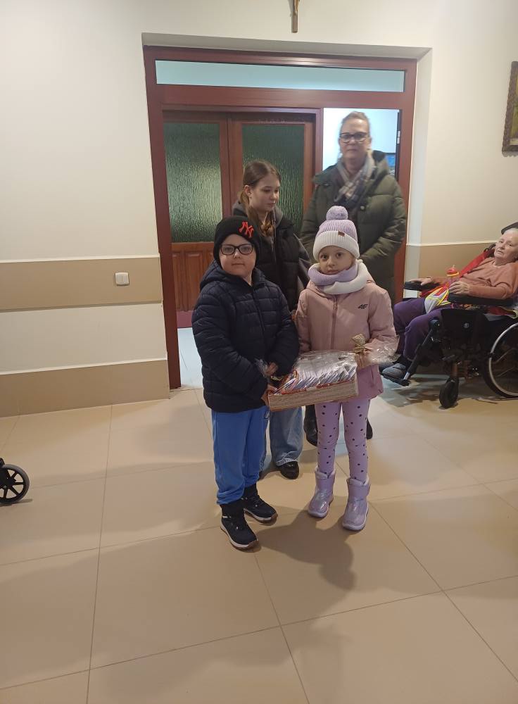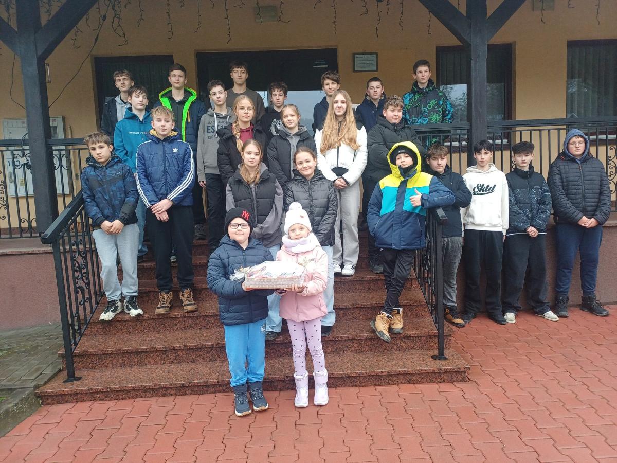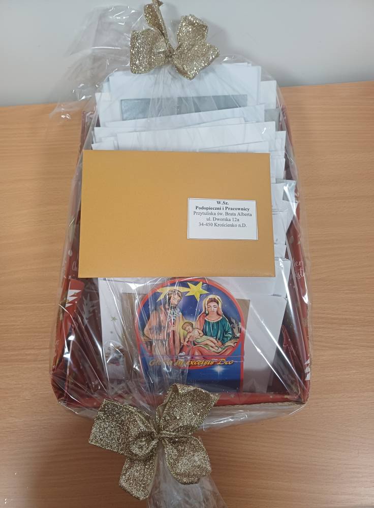 Z okazji nadchodzących Świąt Bożego Narodzenia członkowie wolontariatu własnoręcznie przygotowali kartki świąteczne, które wraz z najmłodszymi uczestnikami zajęć świetlicowych wręczyli podopiecznym, mieszkańcom i pracownikom Przytuliska im. św. Brata Alberta oraz pracownikom Biblioteki Gminna Biblioteka Publiczna Filia w Grywałdzie. Przy okazji wizyty uczniowie złożyli serdeczne życzenia oraz zadbali o podtrzymywanie bożonarodzeniowych tradycji, a troską otoczyli ludzi starszych i schorowanych, kształtując w ten sposób empatię i altruizm.