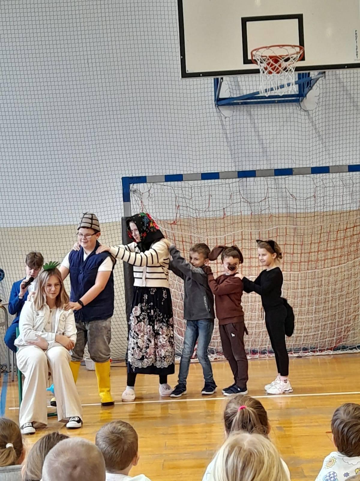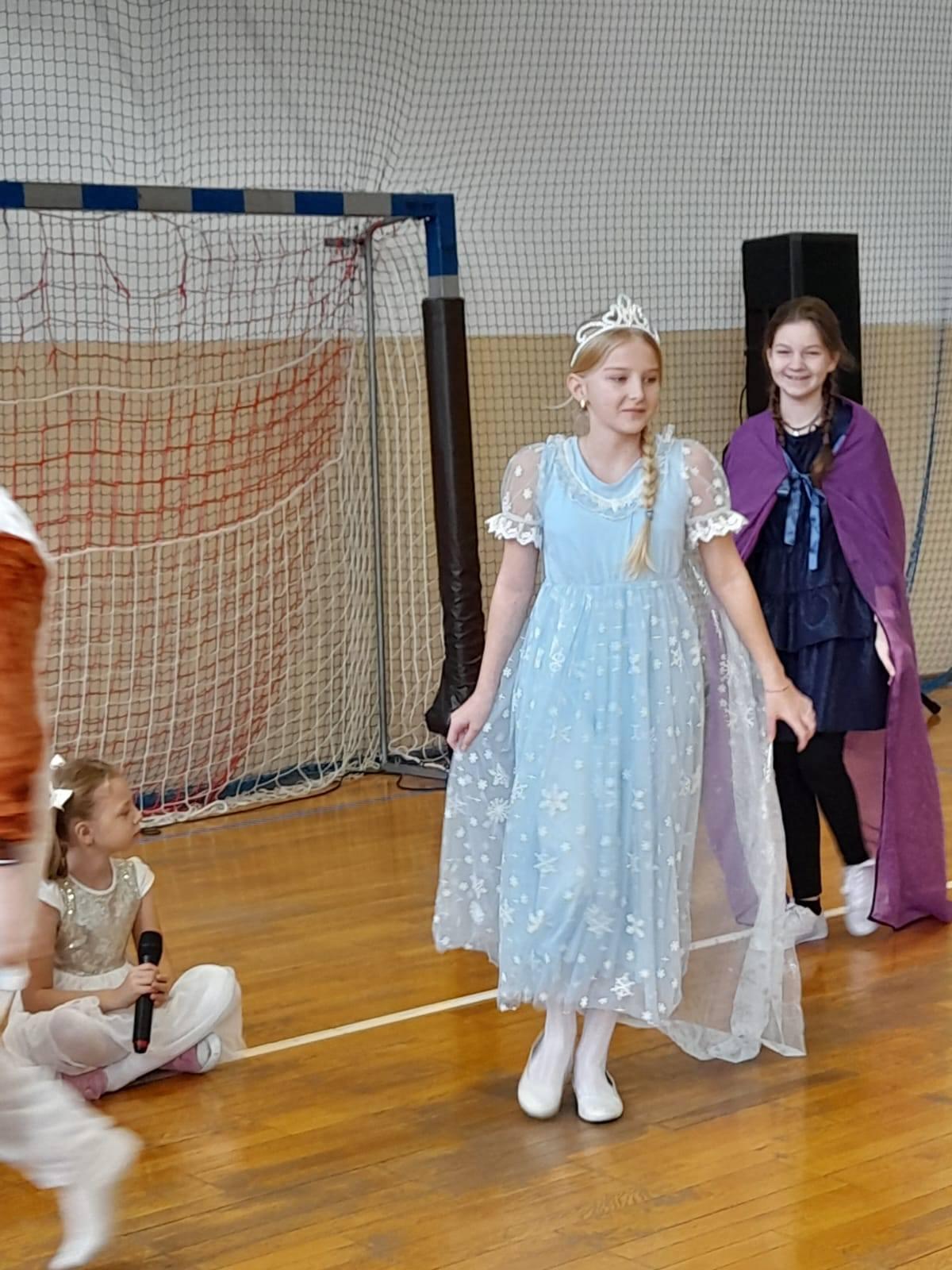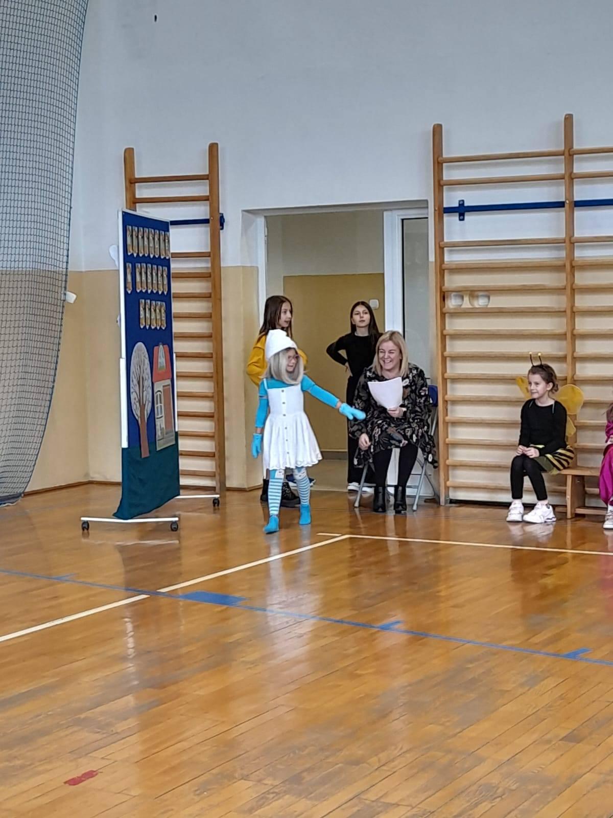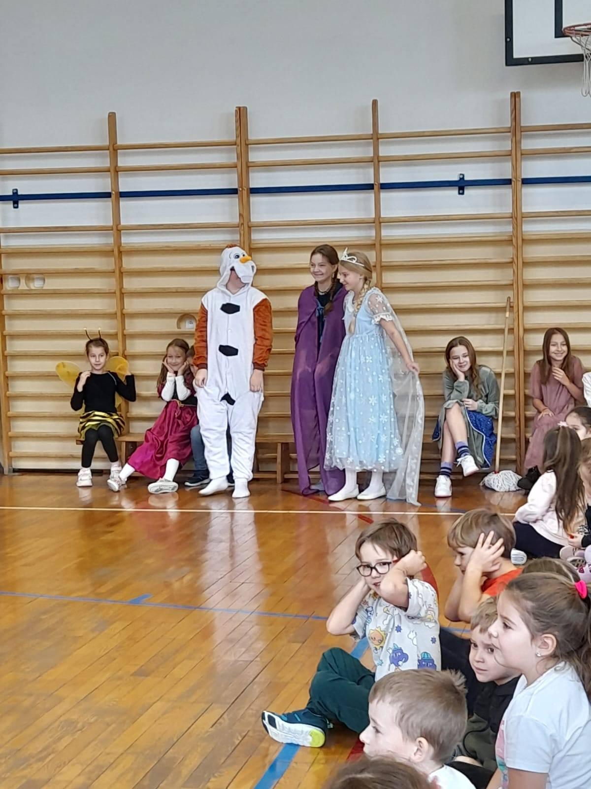 Na scenie pojawili się m.in. Smerfy, Calineczka, Kubuś Puchatek, Kopciuszek, Królowa Śniegu, Kaczka Dziwaczka, Pszczółka Maja oraz bohaterowie „Krainy Lodu”. Uczniowie zaprezentowali także wesołe przedstawienie „Rzepka na wesoło” na podstawie utworu Juliana Tuwima.