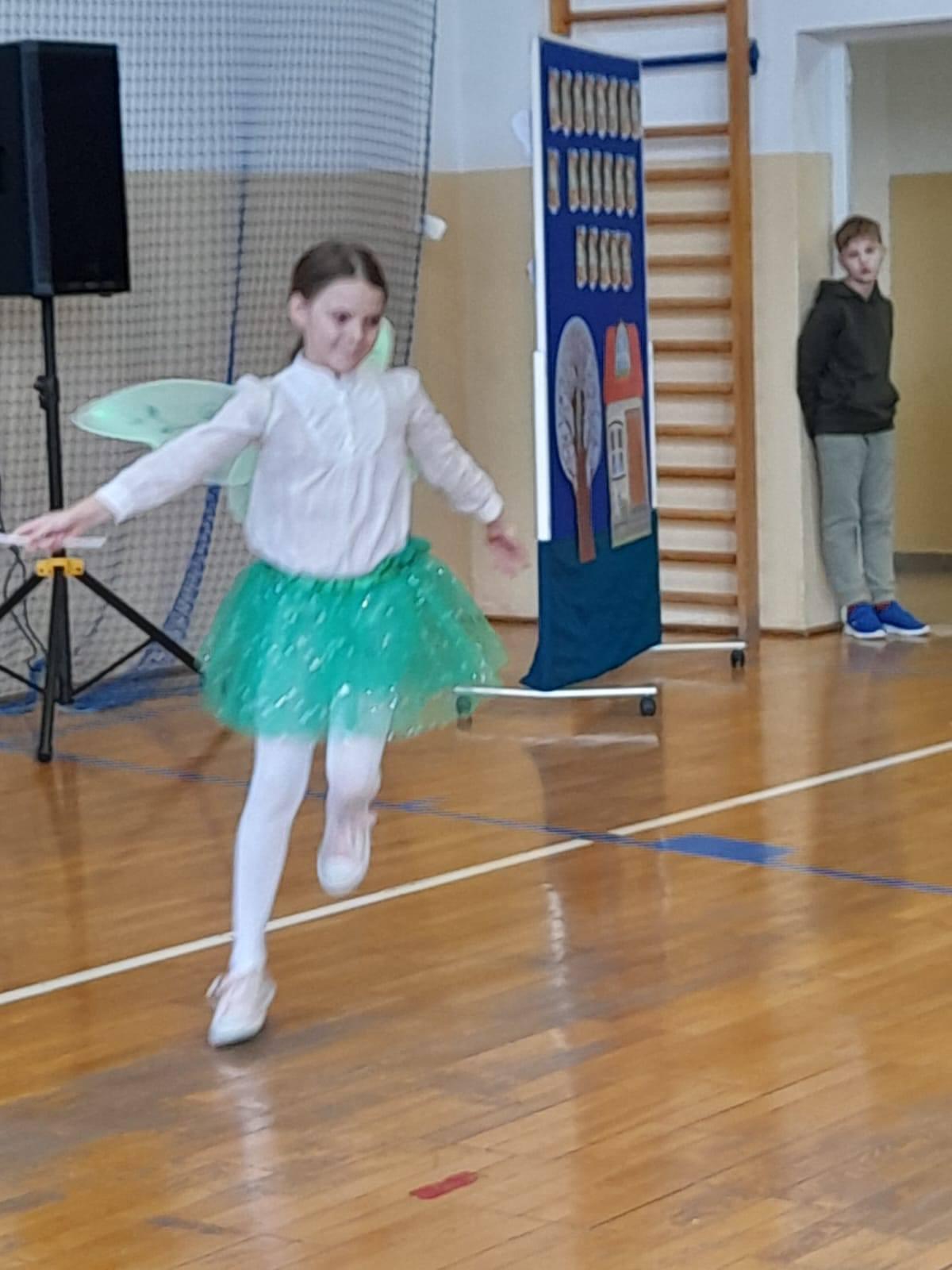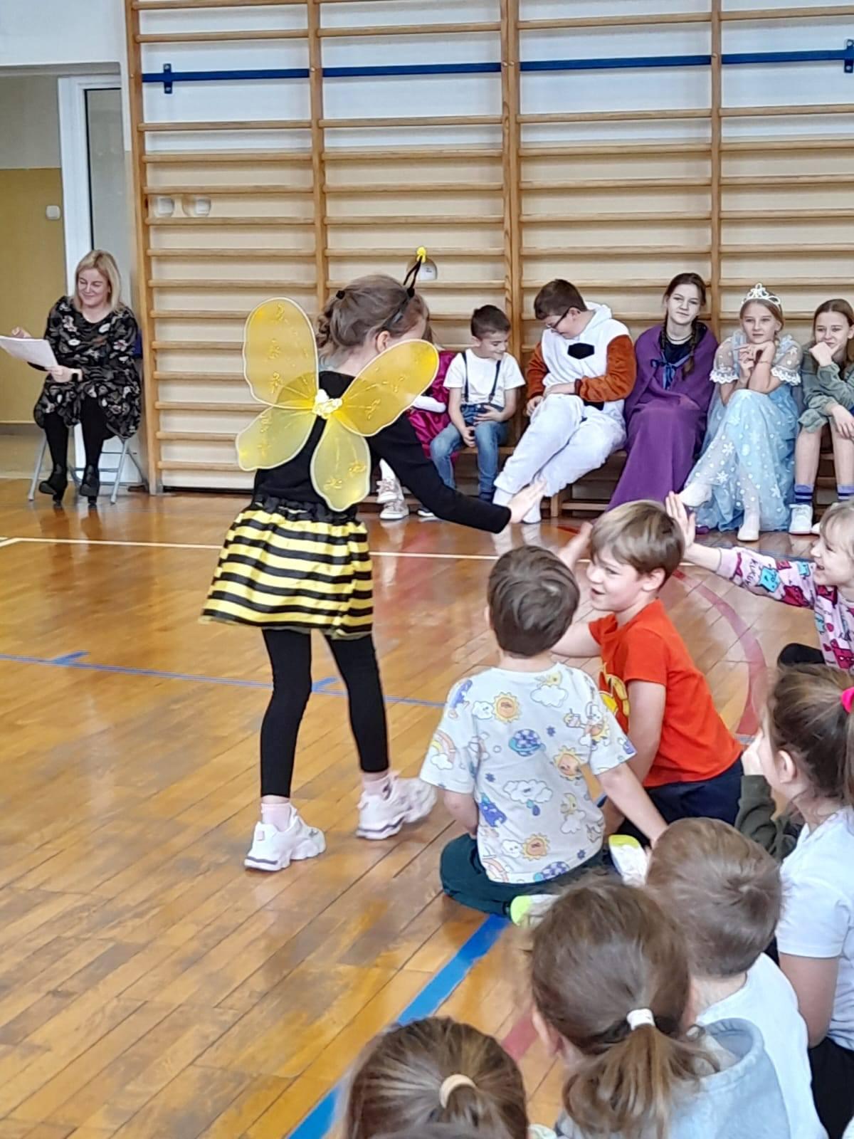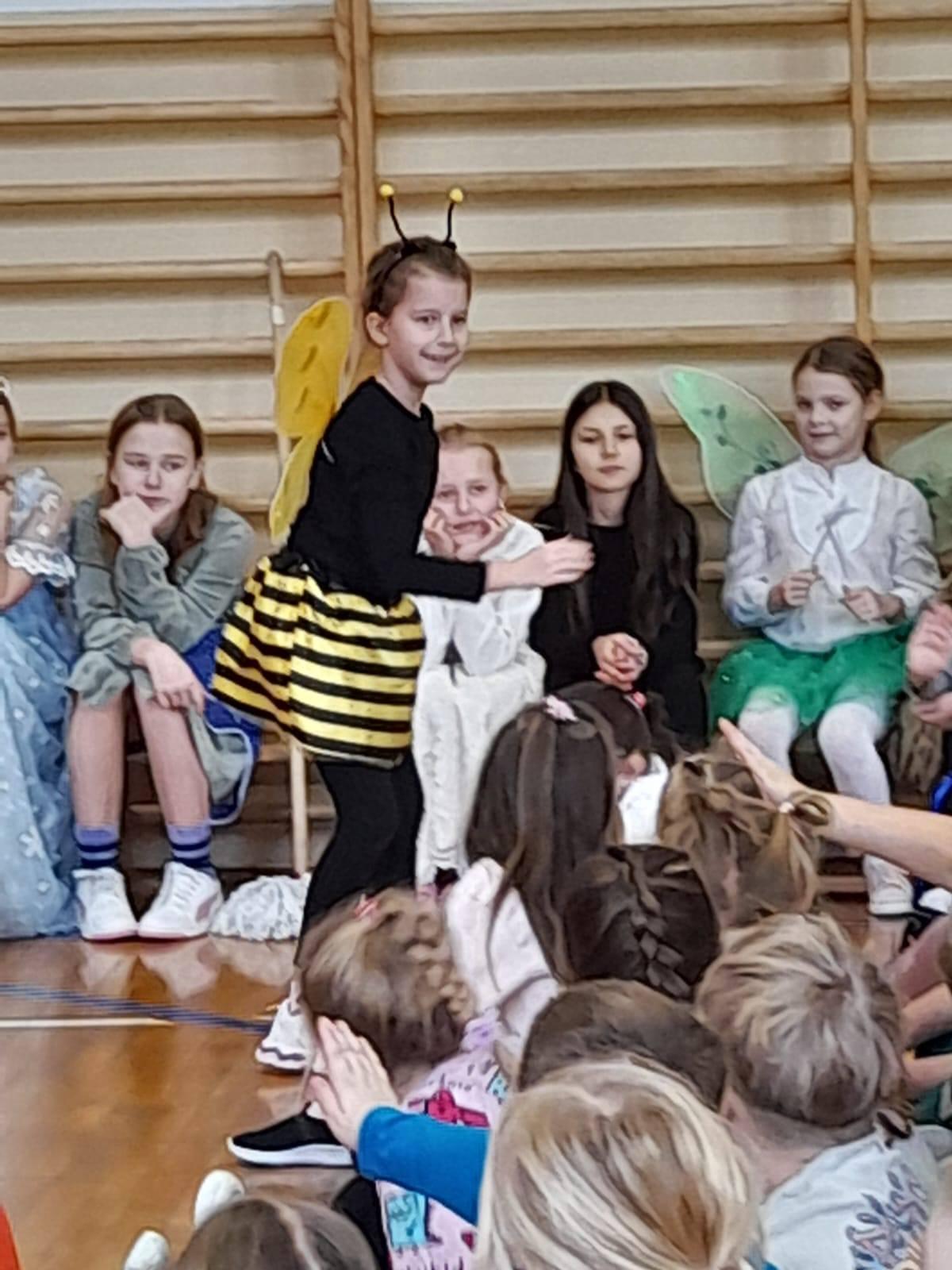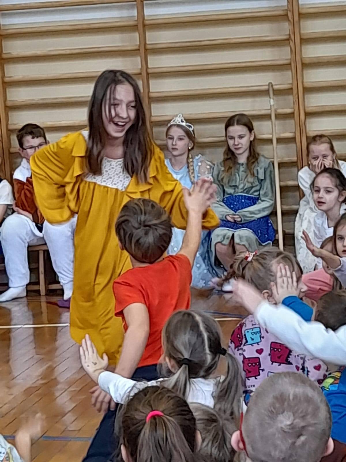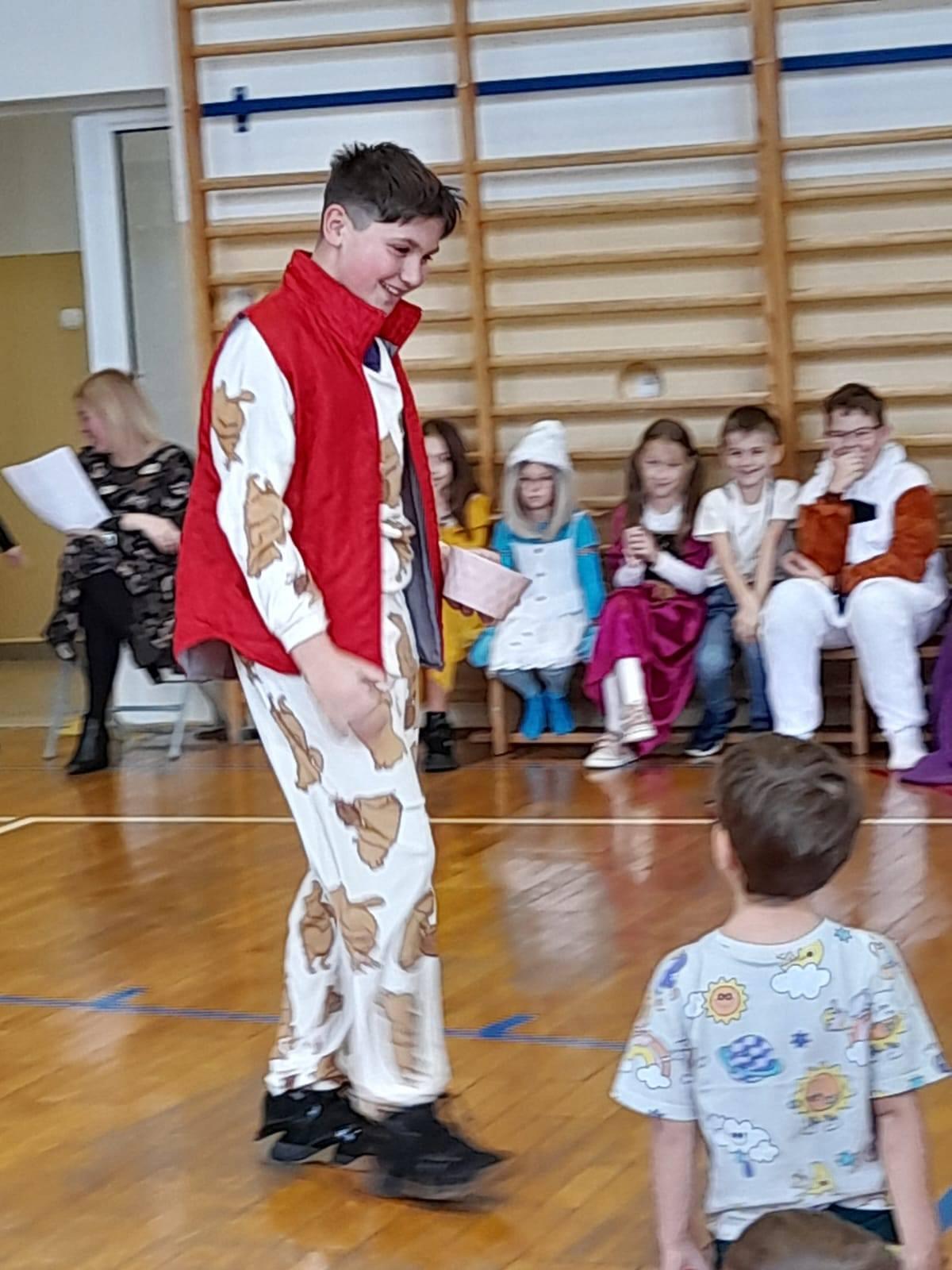 Na scenie pojawili się m.in. Smerfy, Calineczka, Kubuś Puchatek, Kopciuszek, Królowa Śniegu, Kaczka Dziwaczka, Pszczółka Maja oraz bohaterowie „Krainy Lodu”. Uczniowie zaprezentowali także wesołe przedstawienie „Rzepka na wesoło” na podstawie utworu Juliana Tuwima.
