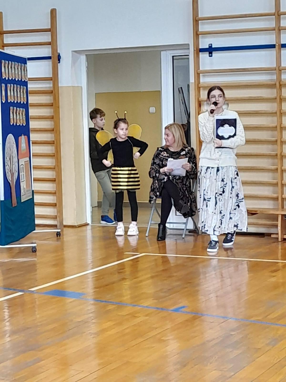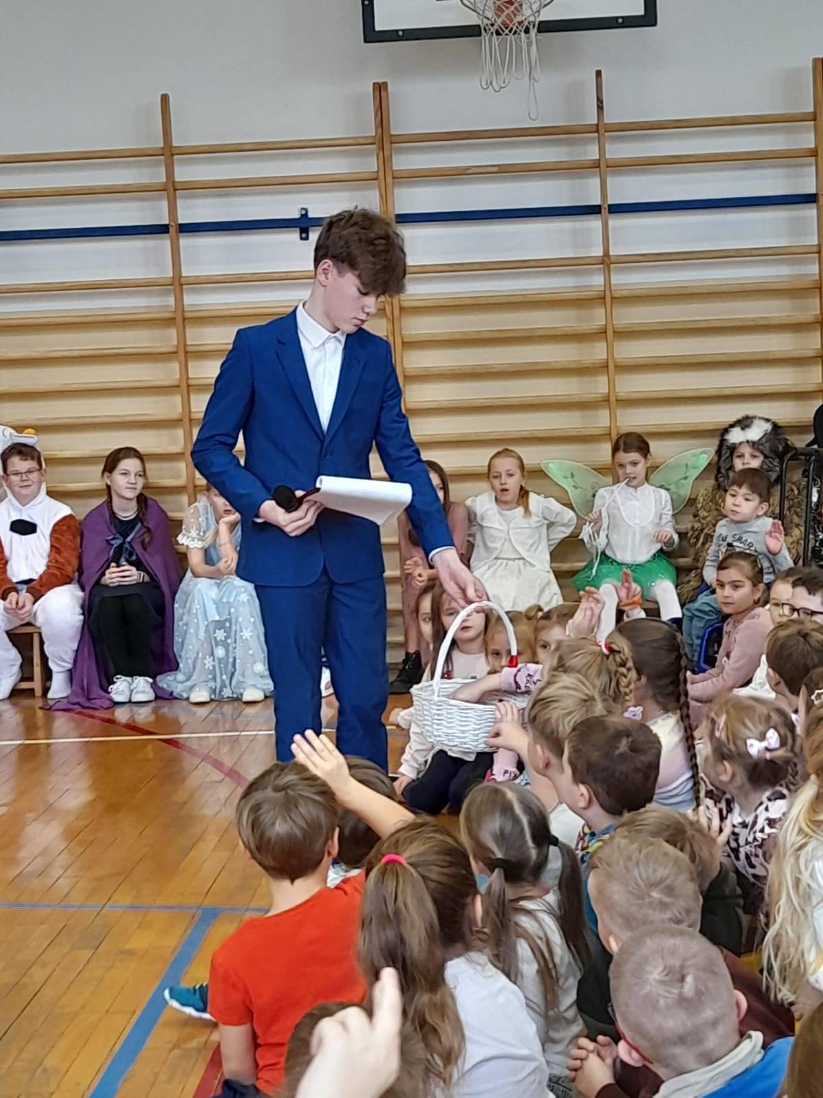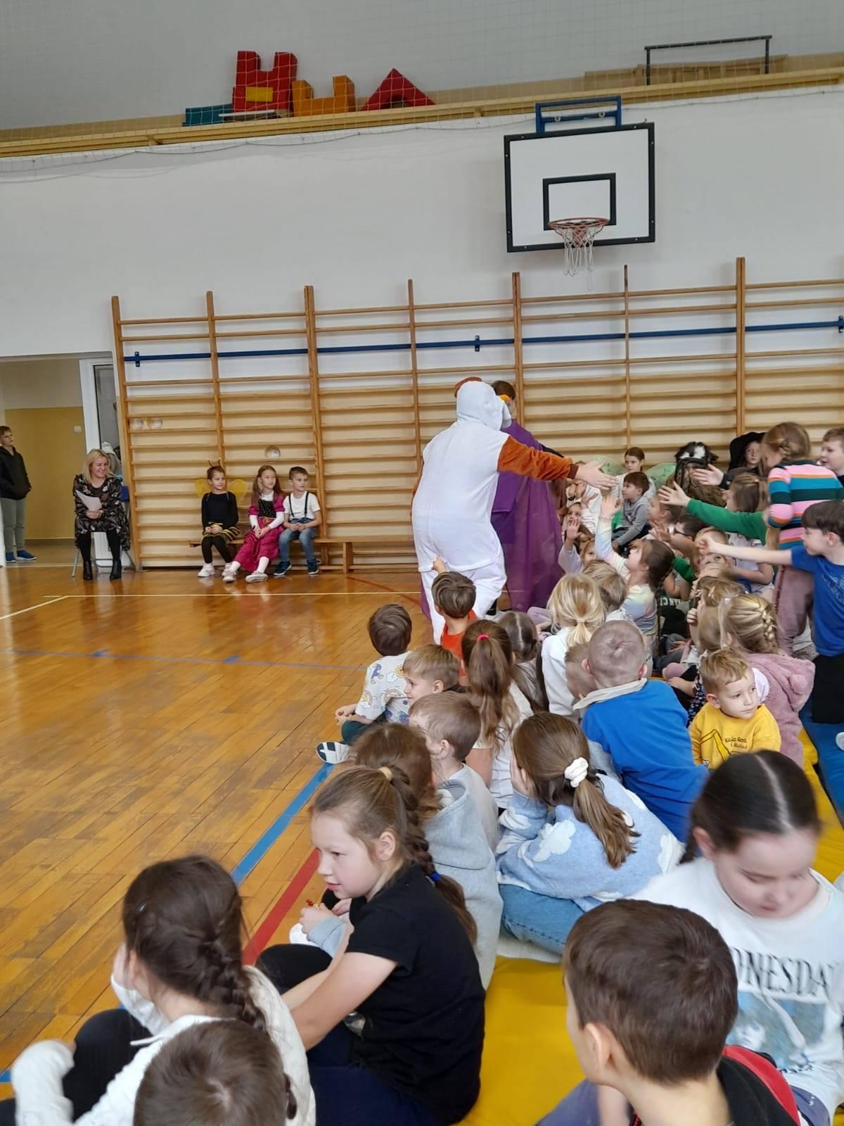 4 grudnia 2025 roku w sali gimnastycznej odbyło się przedstawienie z okazji Dnia Postaci z Bajki oraz Pluszowego Misia, przygotowane dla dzieci z oddziałów przedszkolnych oraz uczniów klas 1–3. Wystąpili uczniowie kółka teatralnego, którzy wcielili się w znane bajkowe postacie.