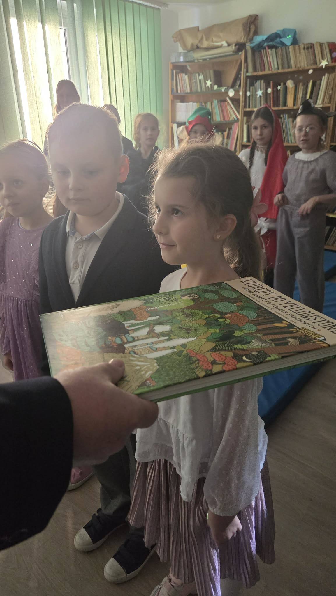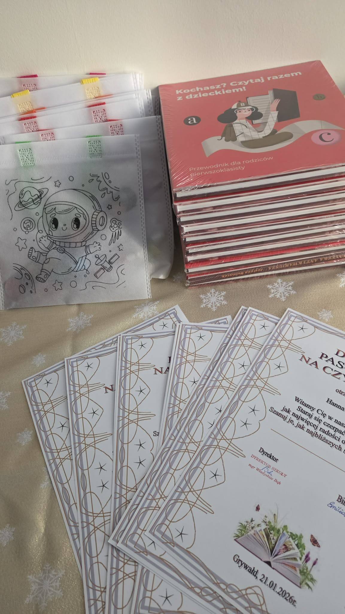 We środę 21.01.2026 r. w bibliotece szkolnej odbyło się uroczyste przyjęcie uczniów klasy pierwszej w poczet czytelników biblioteki szkolnej.