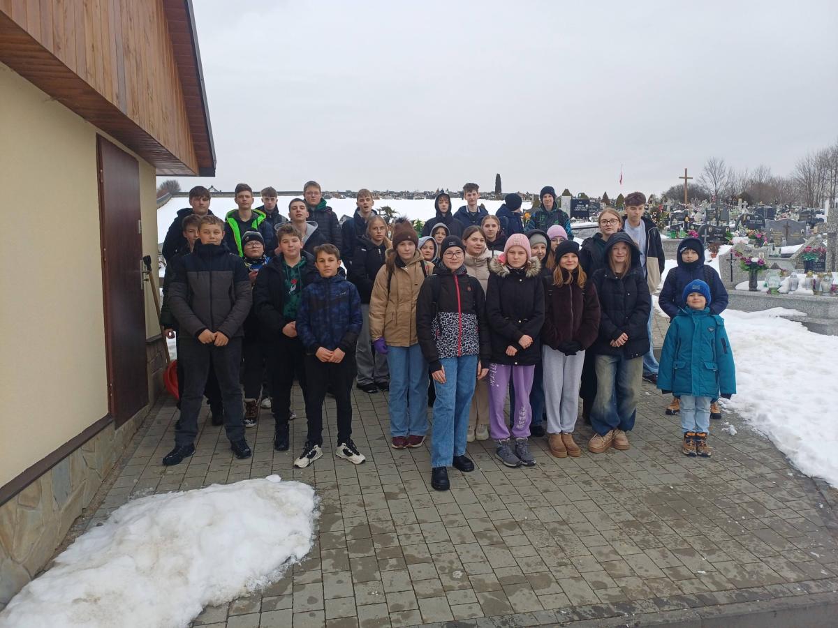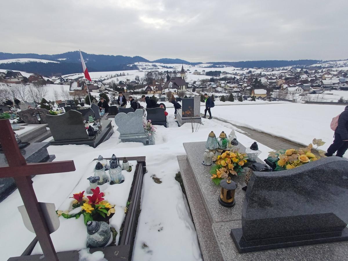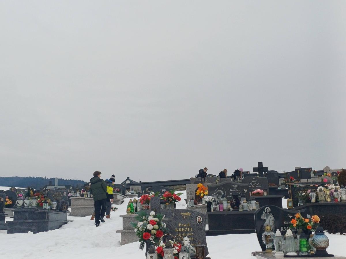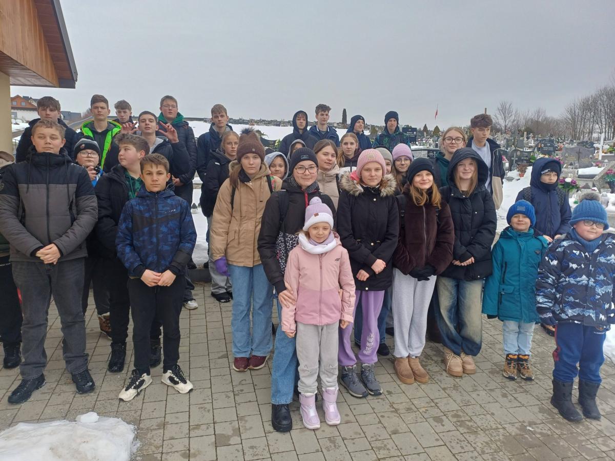 Uczniowie klas VI-VIII wraz z wolontariuszami i podopiecznymi świetlicy szkolnej udali się na cmentarz parafialny, by modlitwą otoczyć zmarłych dziadków i babcie z okazji przypadającego w styczniu ich święta.