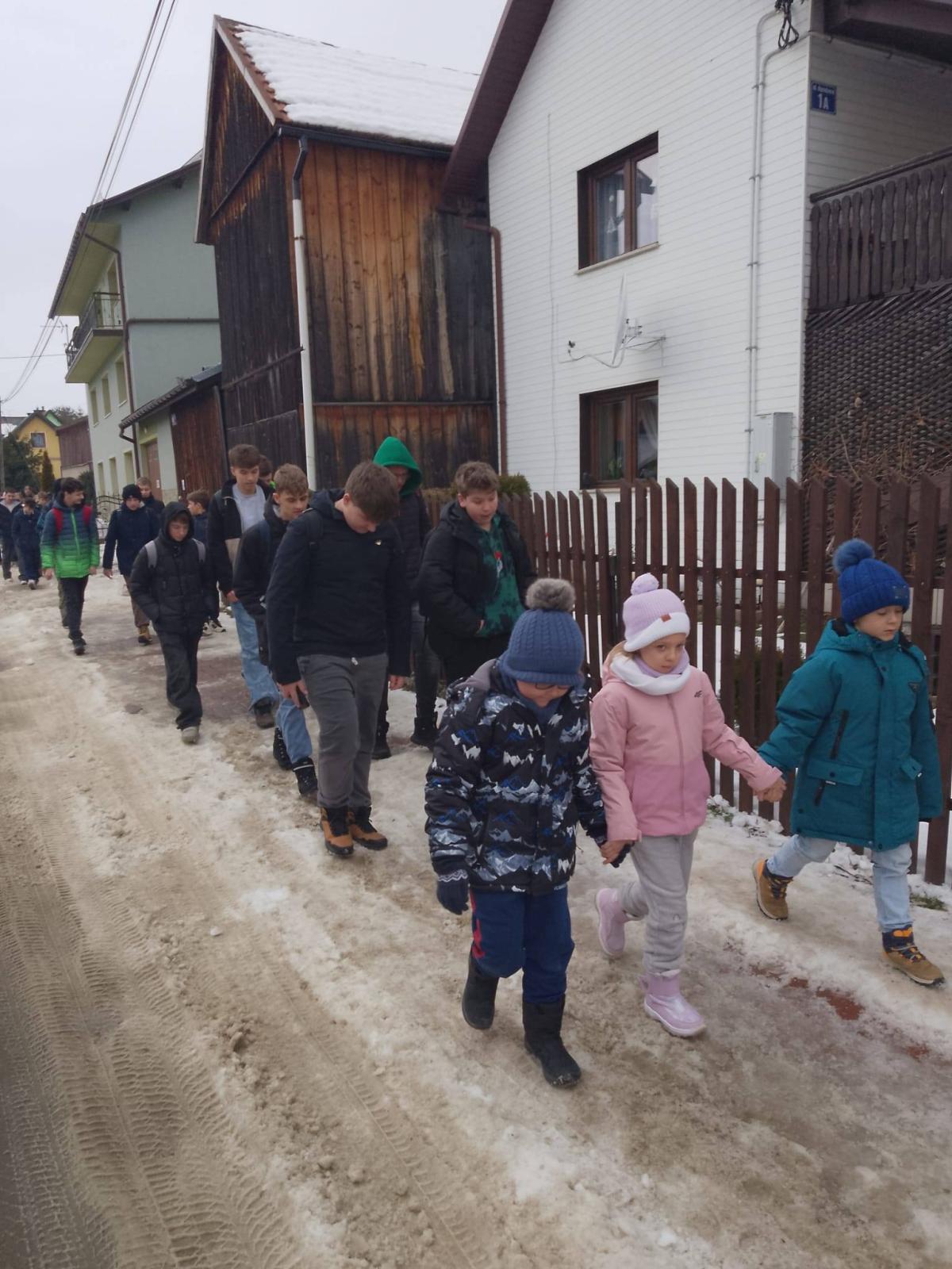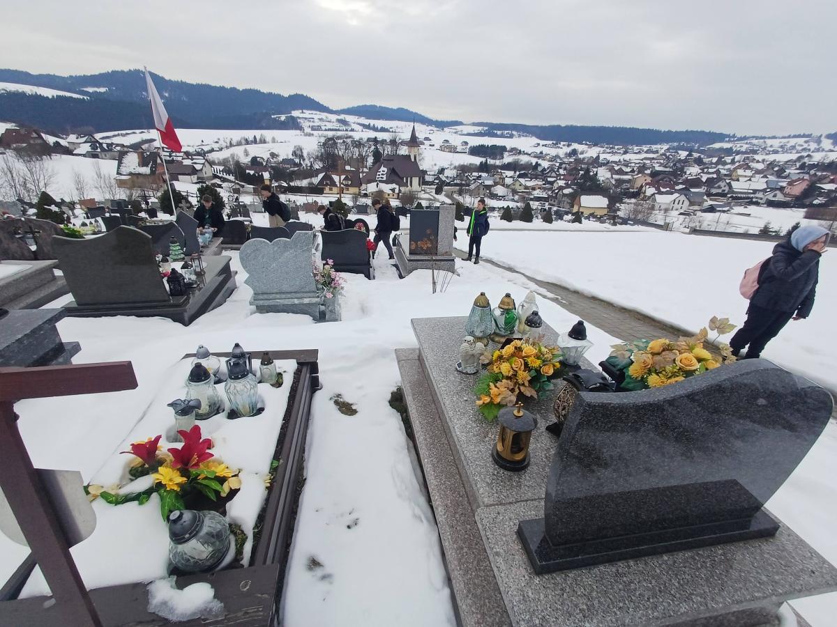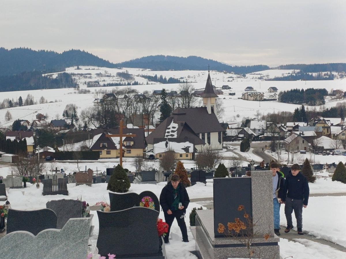 Uczniowie klas VI-VIII wraz z wolontariuszami i podopiecznymi świetlicy szkolnej udali się na cmentarz parafialny, by modlitwą otoczyć zmarłych dziadków i babcie z okazji przypadającego w styczniu ich święta.