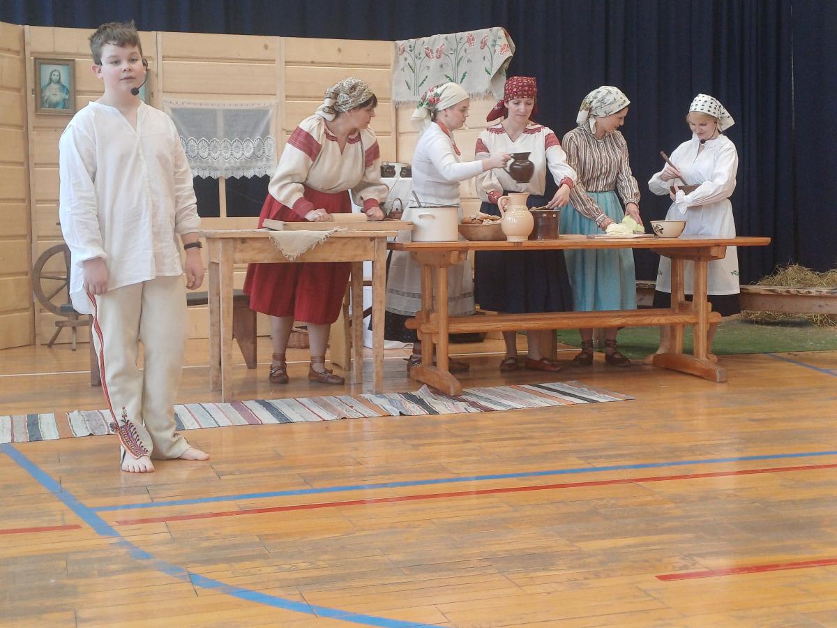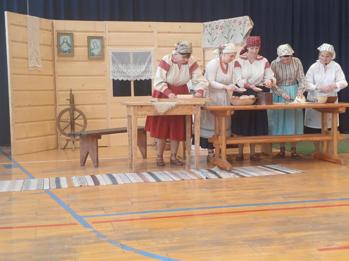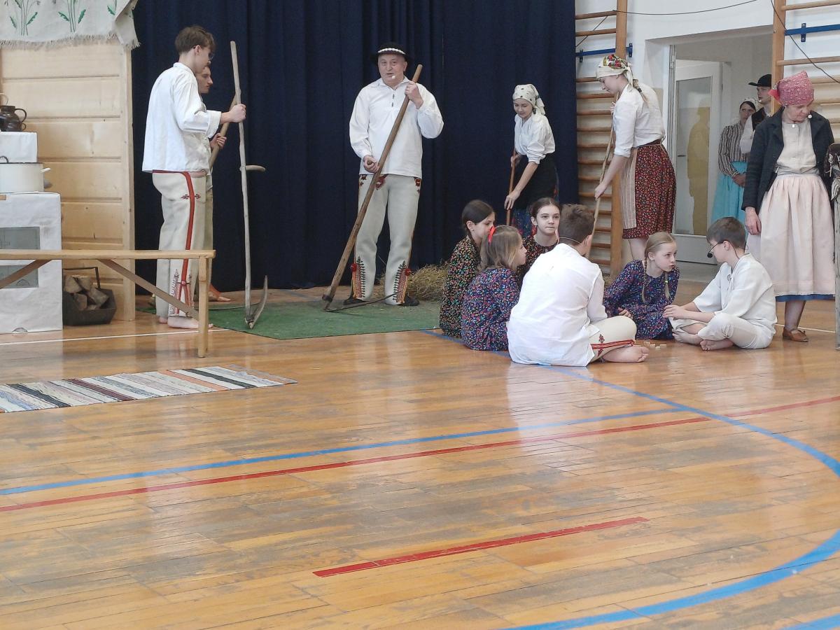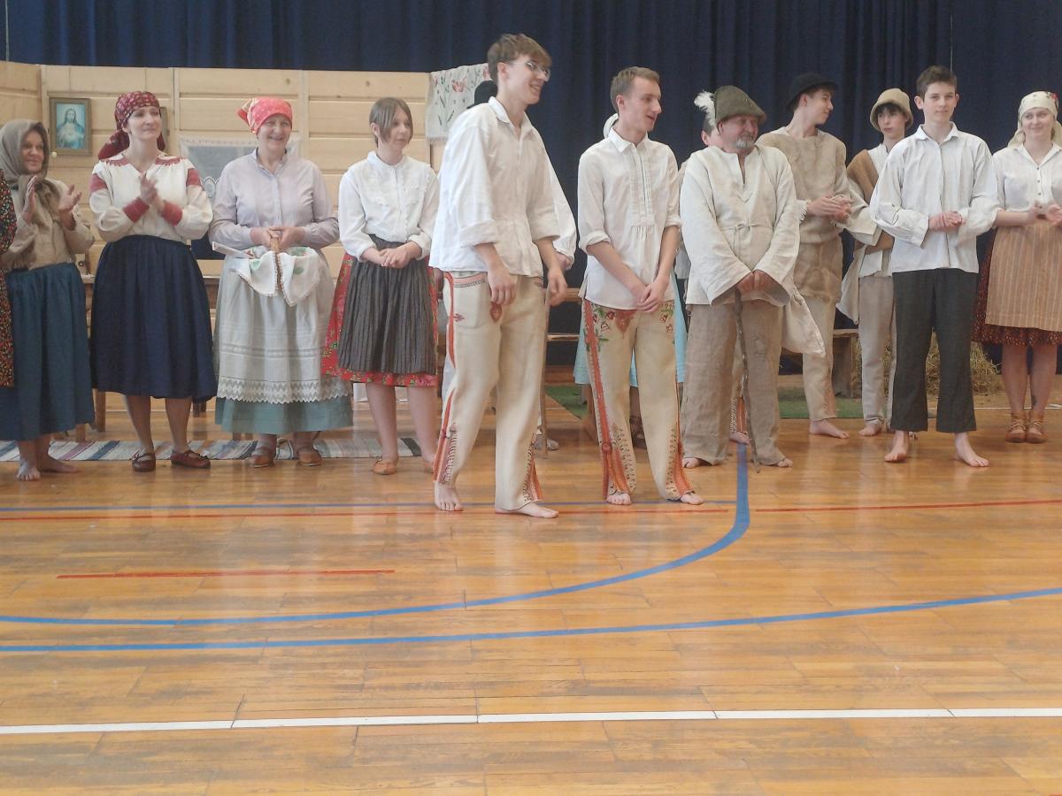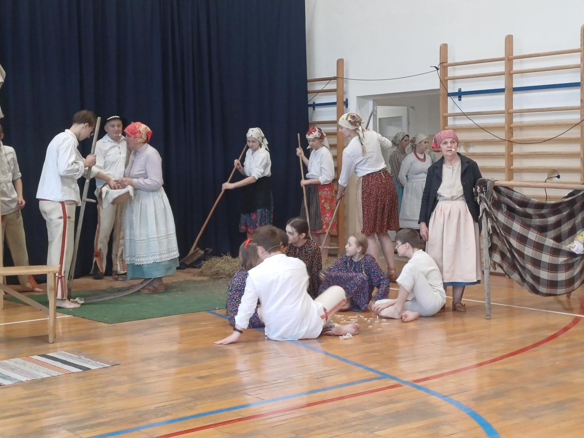 Etap wojewódzki konkursu rozpoczął się przedstawieniem „Bozy obiod”. W rolę aktorów wcielili się mieszkańcy Grywałdu, absolwenci oraz uczniowie naszej szkoły. Przybyłych trąbitą przywitał Jan Kubik. Dyrektor Szkoły Podstawowej w Grywałdzie, pan Władysław Bąk, zwrócił uwagę, że kultywowanie tradycji jest nie tylko obowiązkiem, ale przede wszystkim przywilejem i dumą. Życzył również sukcesów uczestnikom biorącym udział w Konkursie. Głos zabrał także Wójt Gminy Krościenko nad Dunajcem – pan Stanisław Tkaczyk.